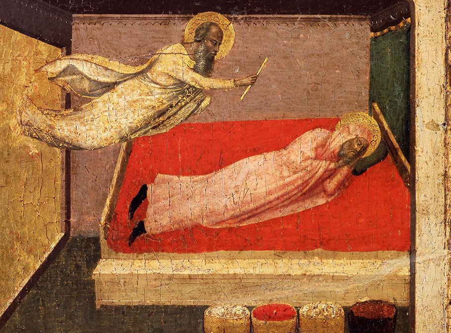 Bernardo Daddi (1280-1348). Der heilige Gamaliel erscheint dem heiligen Lukian im Traum. Pinacoteca Vaticana.