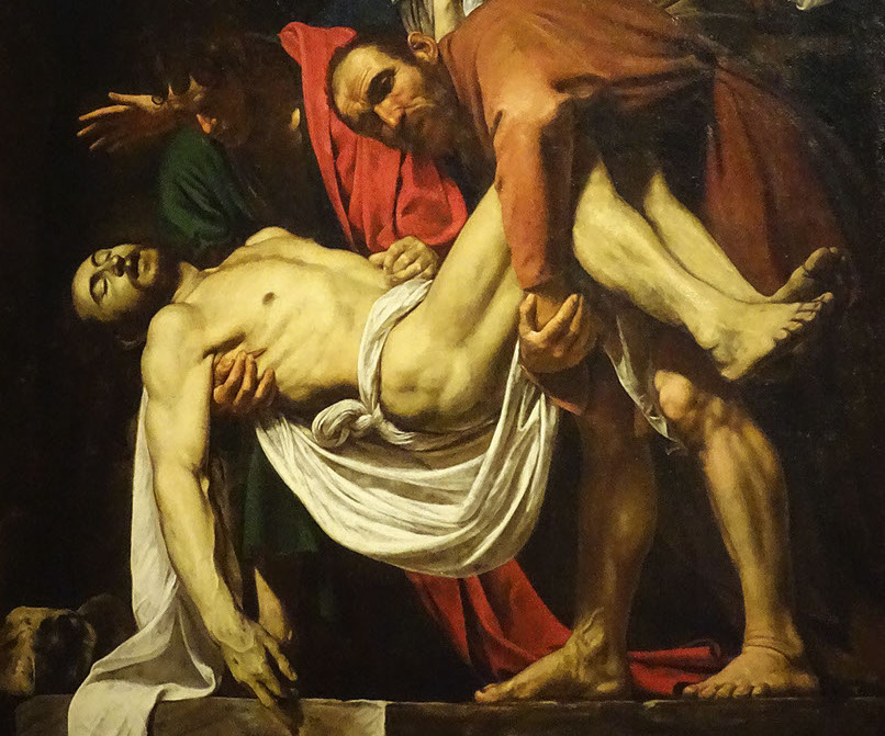 Caravaggio (1571-1610). Die Grablegung Christi, 1600-04. Detail. Pinacoteca Vaticana.