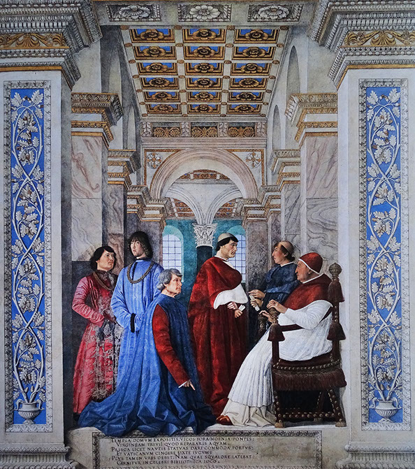 Melozzo di Forlì (1438-1494). Sixtus IV und Bartolomeo Platina, 1477. Pinacoteca Vaticana.