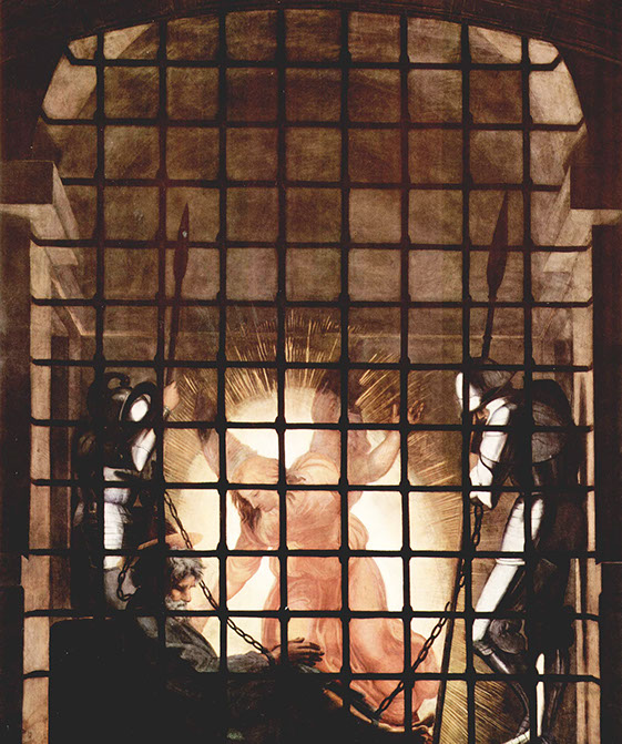 Raffael (1483-1520). Befreiung Petri, 1513-14. Detail. Pinacoteca Vaticana.