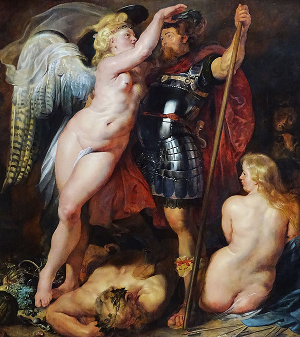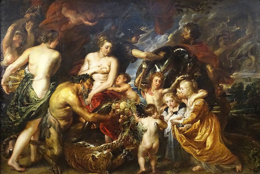 1629- Rubens (1577-1640). Minerva protects Pax from Mars (Peace and War), 1629-30. Detail. National Gallery London.