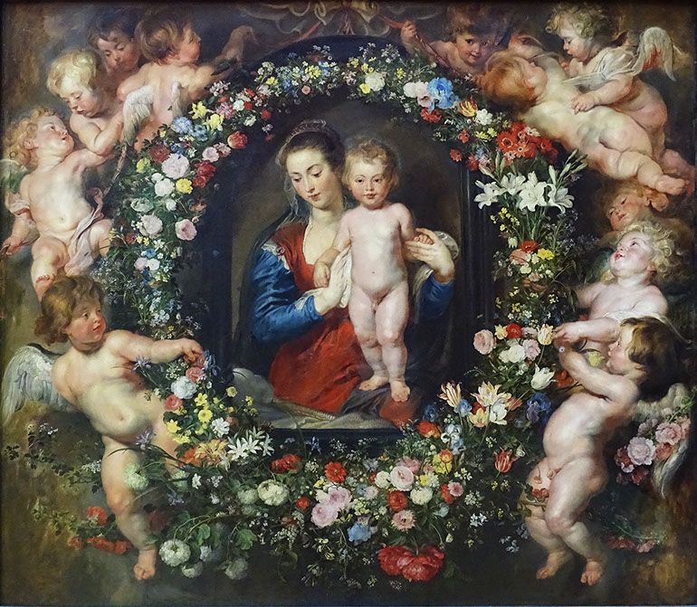 1616-Rubens und Brueghel d.Ä. (1568-1625). Madonna im Blumenkranz, 1616-18. Alte Pinakothek München.