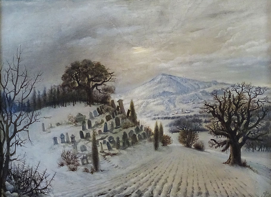 Otto Dix (1891-1969). Judenfriedhof in Randegg im Winter mit Hohenstoffeln, 1935. Museum Saarbrücken.