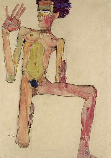 Egon Schiele (1890-1918). Sitzender Männerakt (Selbstdarstellung), 1910. Leopold Wien.