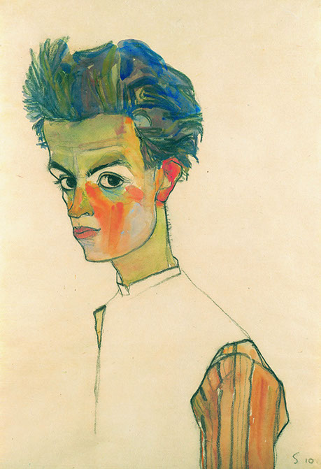 Selbstbildnis in gestreiftem Hemd, 1910. Leopold Museum Wien.