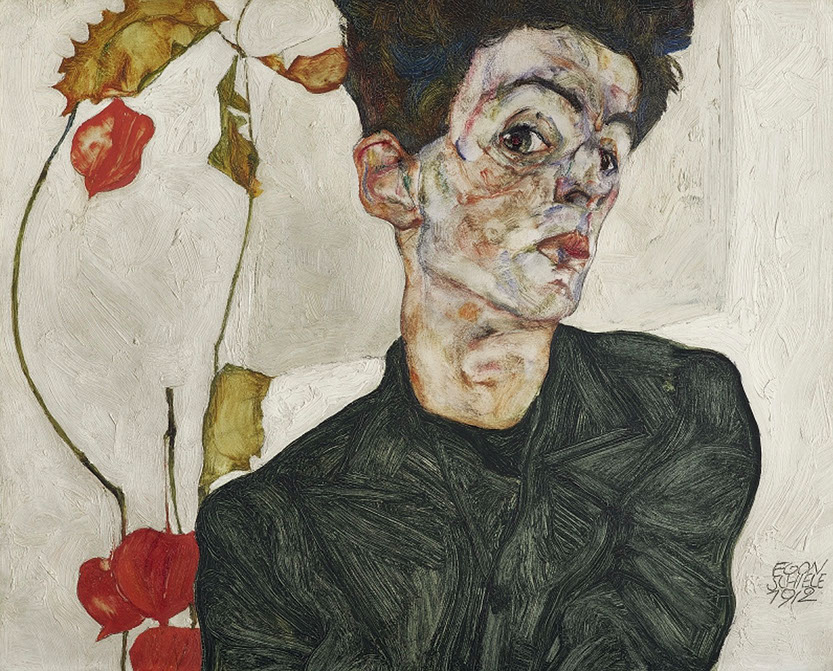 Selbstbildnis mit Lampionfrüchten, 1912. Leopold Museum Wien.