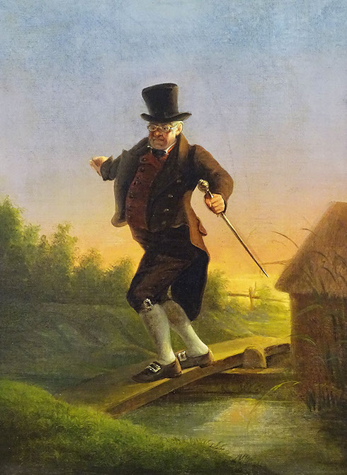 1839-Carl Spitzweg (1808-1885). Der unwegsame Steg (Schulmeisterlein auf dem Steg), 1839-40. Stiftung KKG Winterthur.