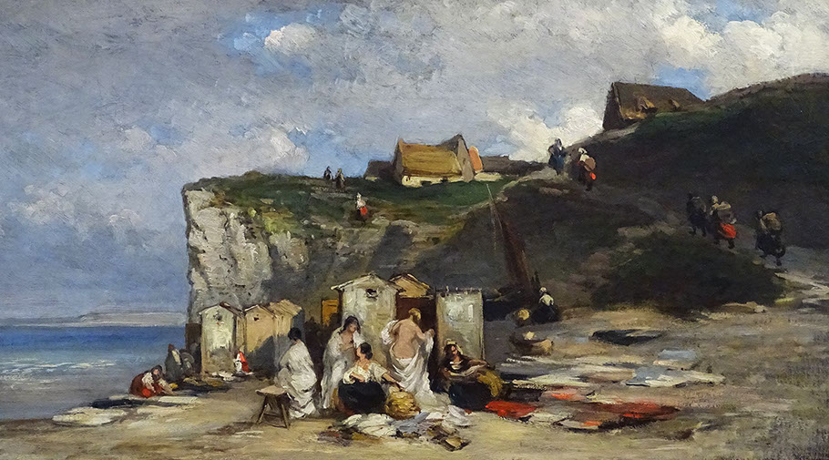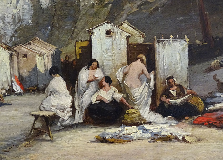 1857-Carl Spitzweg (1808-1885). Frauenbad bei Dieppe, 1857. Detail. Nach Eugène Isabey. Kunstmuseum St. Gallen.