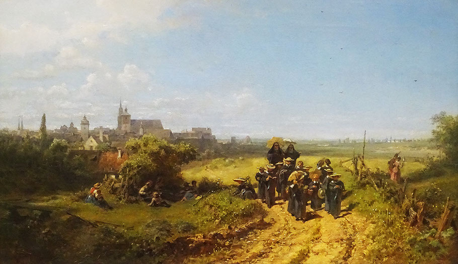 Carl Spitzweg (1808-1885). Andacht am Heimweg, ohne Datum. Detail. Privatbesitz.