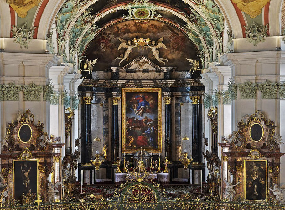Hauptaltar mit Altargemälde von Francesco Romanelli (1610-1662). Mariens Himmelfahrt, 1664-65.