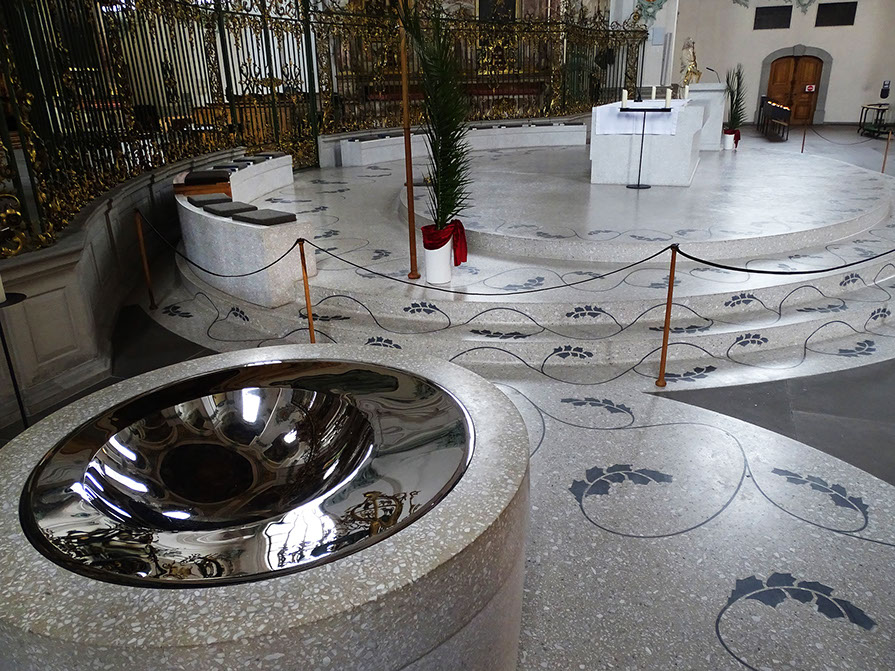 Neuer Altar mit Taufbecken, 2013. Von Caruso St.John Architects London.