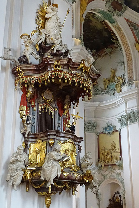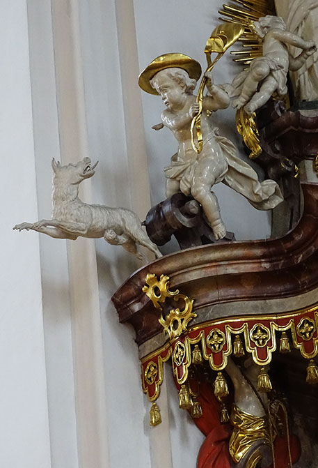 Kanzel_Detail: Heilige Gallus und Otmar.