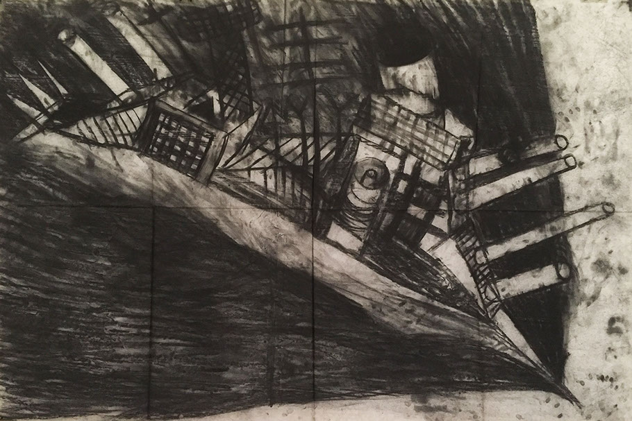 Miriam Cahn (1949). Kriegsschiff, 1982. Sonderausstellung THE DARK SIDE OF THE MOON.