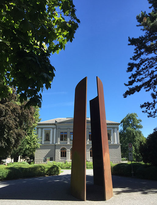 Vor dem Kunstmuseum St. Gallen: Stahlskulptur von Richard Serra.