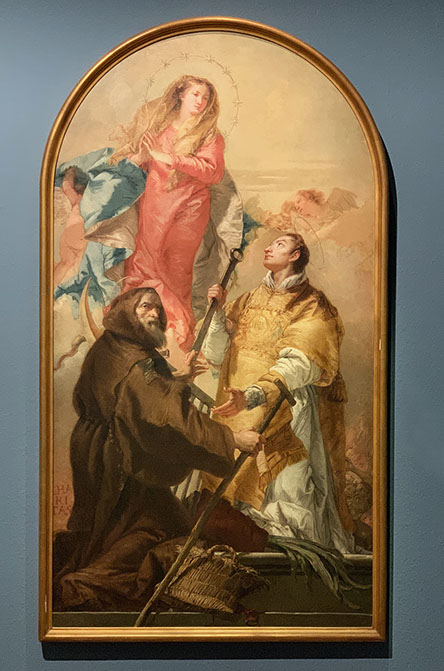 Giandomenico Tiepolo (1727-1804). La Vierge en gloire avec saint Laurent et saint François de Paule.