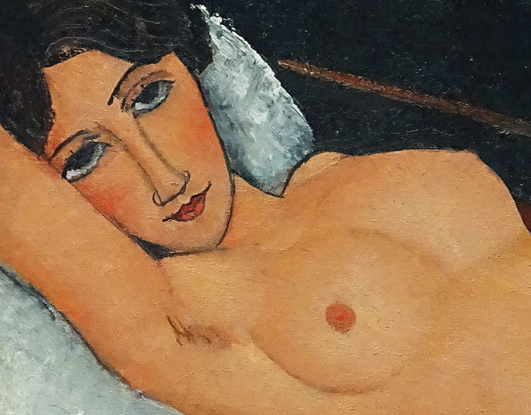 Amedeo Modigliani (1884-1920). Liegender Frauenakt auf weissem Kissen, 1917. Detail. Staatsgalerie Stuttgart