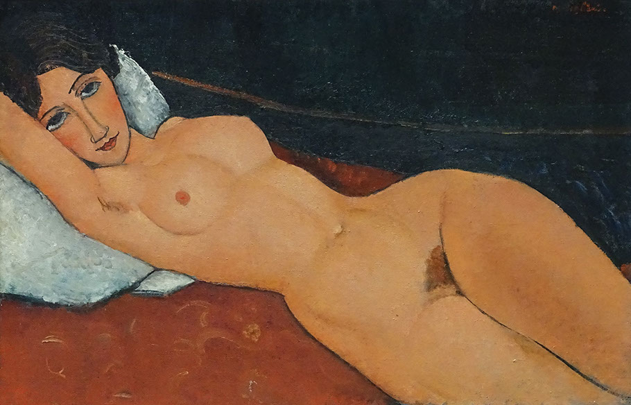 Amedeo Modigliani (1884-1920). Liegender Frauenakt auf weissem Kissen, 1917. Staatsgalerie Stuttgart.