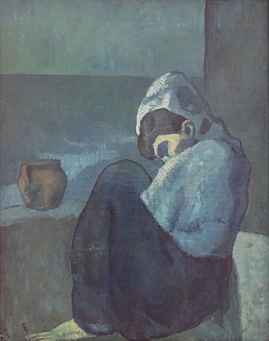 Pablo Picasso (1881-1973). Sitzende Frau mit Kapuze (Die Kauernde), 1902. Staatsgalerie Stuttgart.
