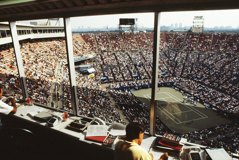 Flushing Meadows im New Yorker Stadtteil Queens. Louis Armstrong Stadium, 1985.