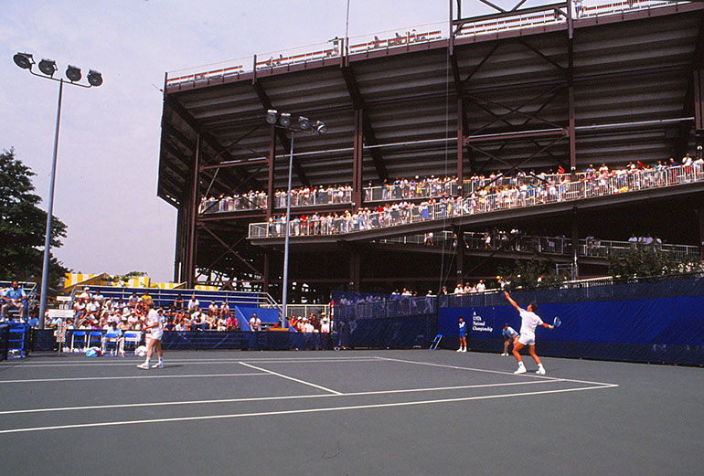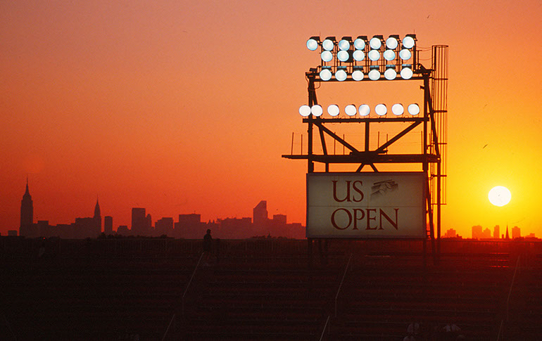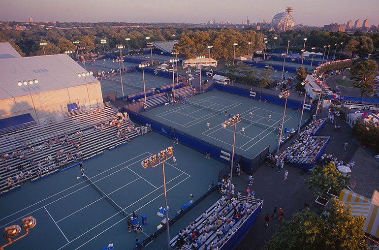 Aussenplatz mit Blick auf das Louis Armstrong Stadium.