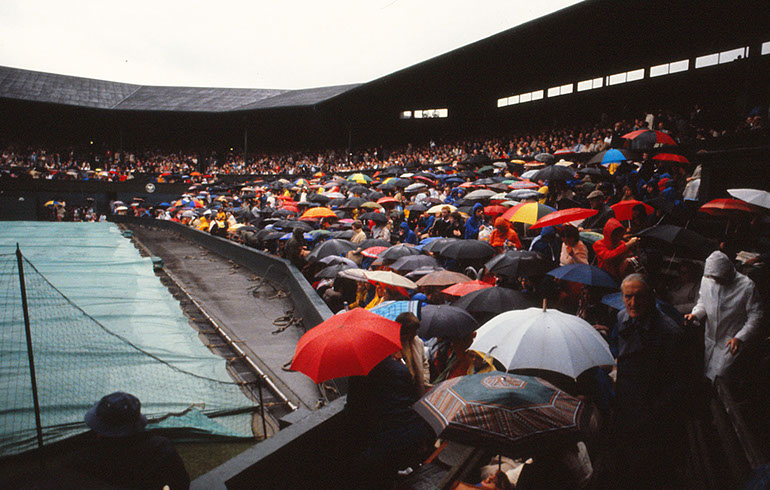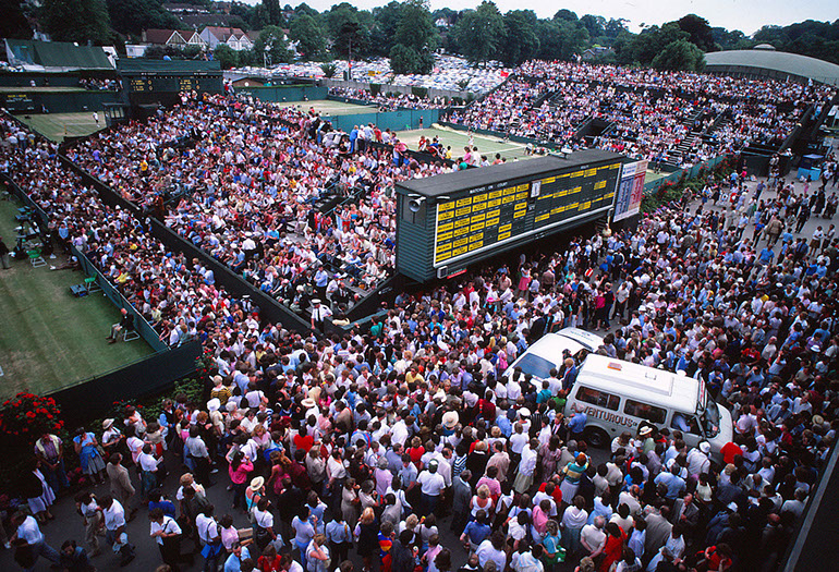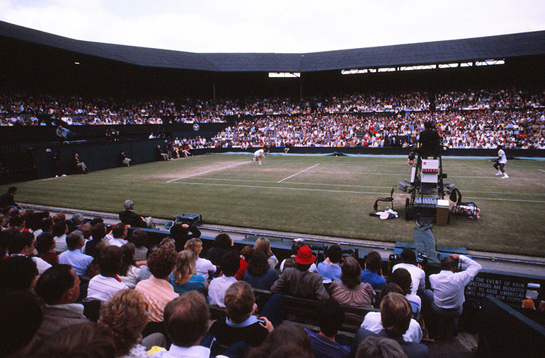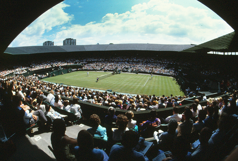 Der alte Wimbledon Centre Court, heimelig und noch ohne Regendach.