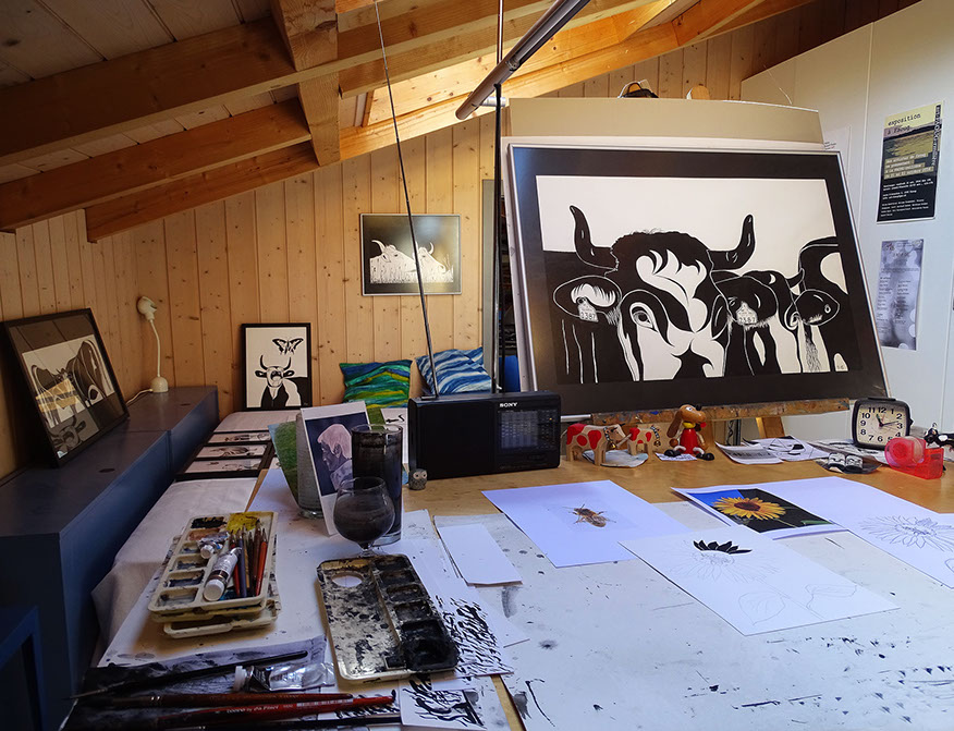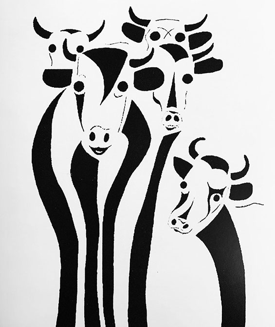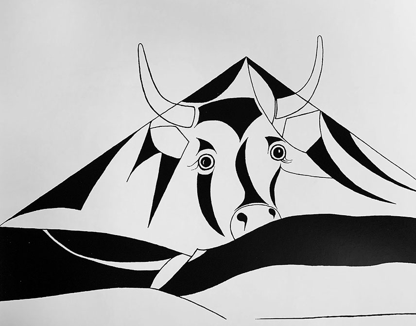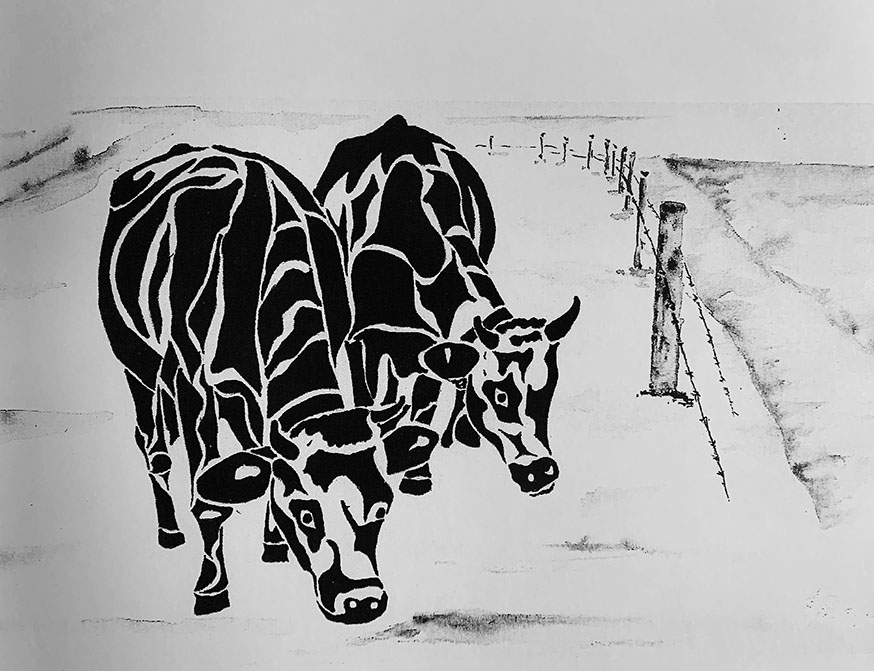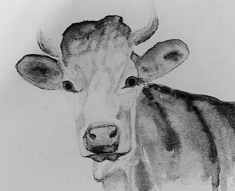 Ruedi Theiler (1944). Kuh und Schmetterlinge, 2020.