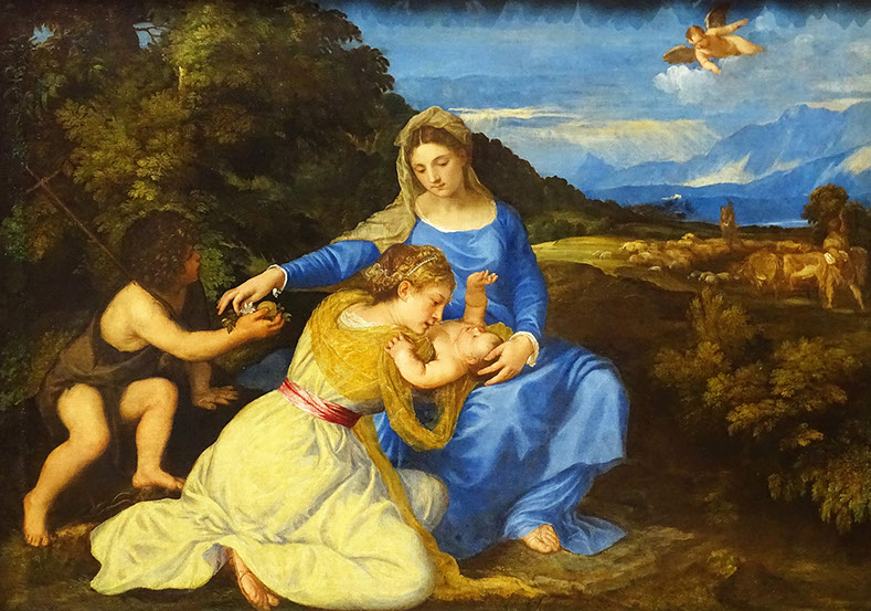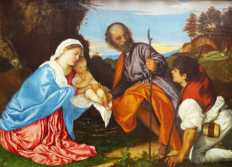 1510-Tizian (1490-1576). The Holy Family with a Shepherd, 1510. National Gallery London.