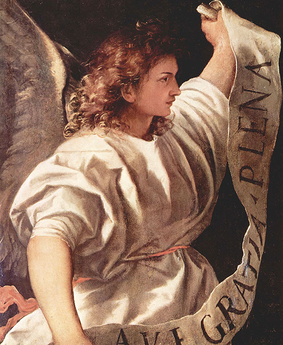 1520-Tizian (1490-1576). Wiederauferstehung Christi, Verkündigungsengel, 1520-22. Santi Nazaro e Celso, Brescia.