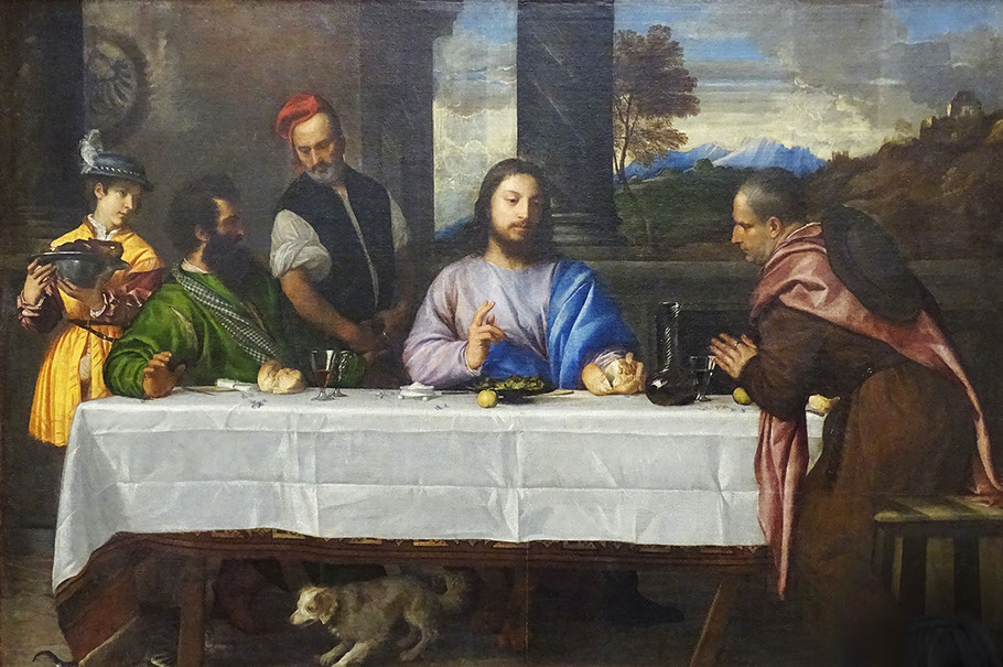 1530-Tizian (1490-1576). Les Pèlerins d'Emmaüs, 1530. Musée du Louvre, Paris.