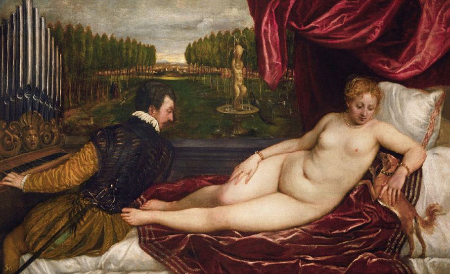 1550-Tizian (1489-1576). Venus mit dem Orgelspieler, 1550. Museo del Prado, Madrid.