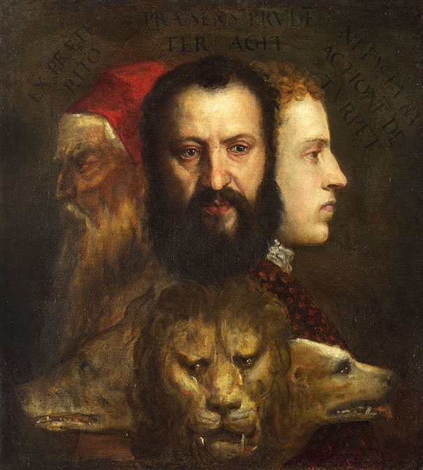 1550-Tizian und Werkstatt (1490-1576). Allegorie der Zeit. Die drei Lebensalter, 1550-65. National Gallery London.