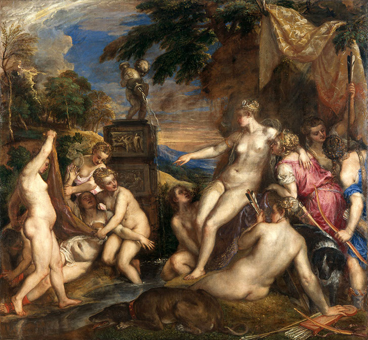 1556-Tizian (1490-1576). Diana and Actaeon, 1556-59. National Gallery, London.