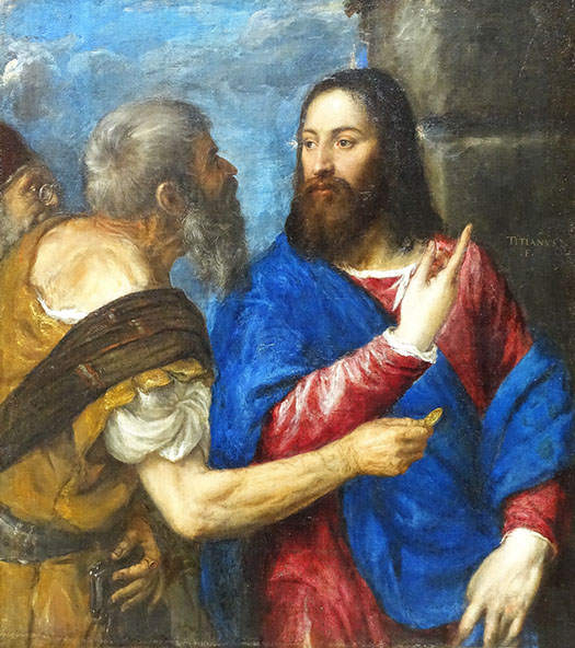 1560-Tizian (1490-1576). The Tribute Money, 1560-68. National Gallery London.