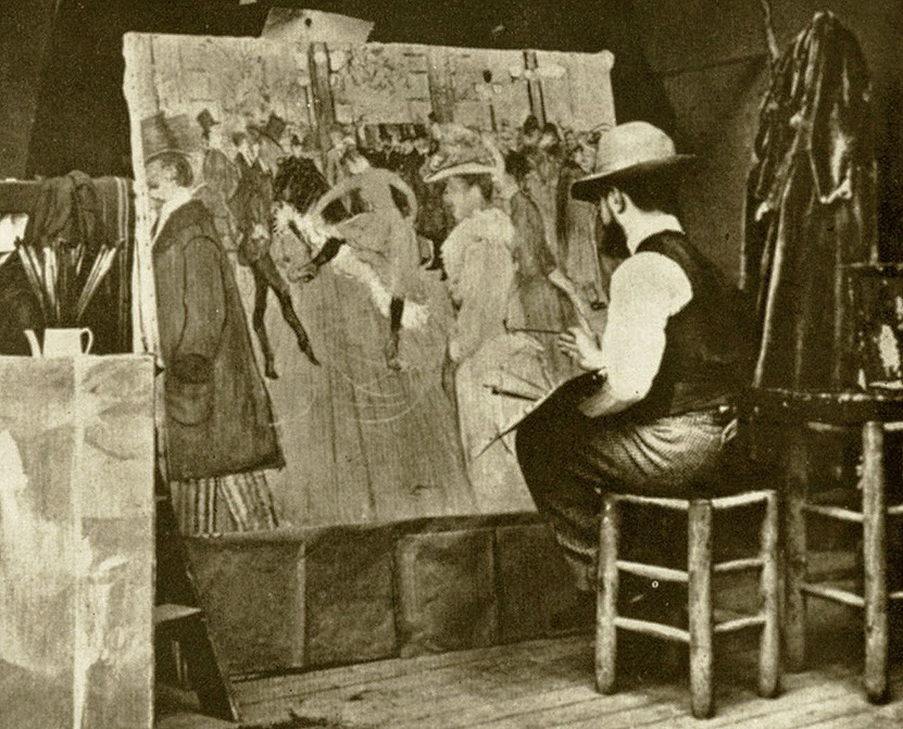 Henri de Toulouse-Lautrec (1864-1901). Im Atelier mit dem Werk Moulin Rouge, 1890. Foto WikiCommons.