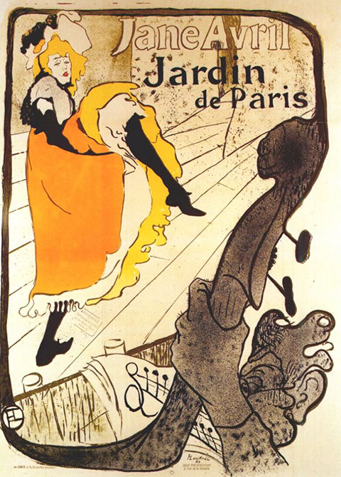 1893-Henri de Toulouse-Lautrec (1864-1901). Plakat Jane Avril, Jardin de Paris. 1893. WikiCommons.