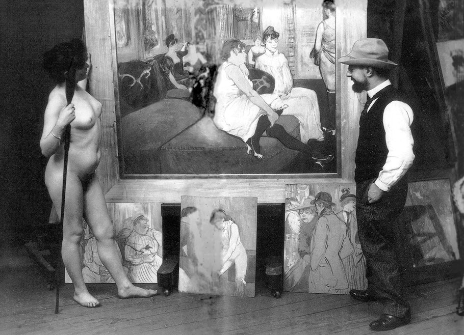 1895-Henri de Toulouse-Lautrec (1864-1901). Mit Modell im Studio, 1895. Foto Maurice Guibert, WikiCommons.