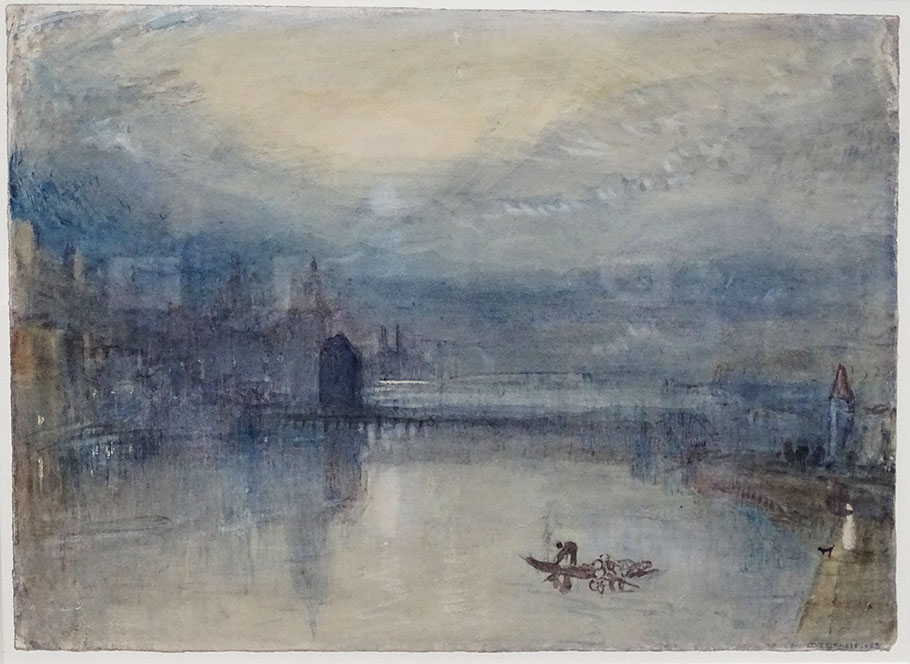 William Turner (1775-1851). Lucerne - Moonrise over the Kapellbrücke, 1807-19. Tate London.