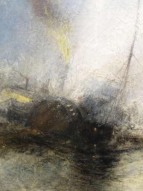 William Turner (1775-1851). Snow Storm. Steamboat off a harbour's mouth making signals, 1842. Detail. Tate London.