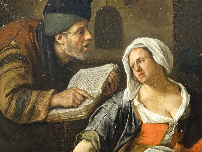 Jan Steen (1626-1679). La famiglia dell'alchimista, 1668. Detail. Ca d'oro Venezia.