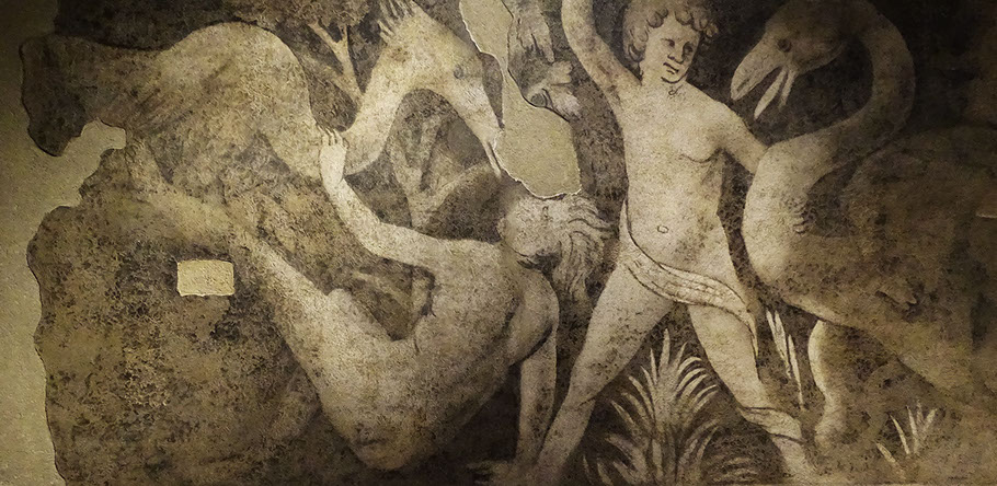 Tizian (1490-1576). Combattimenti di uomini e mostri. Abgelöstes Fresko von Fontego dei Tedeschi. Ca d'oro Venezia.