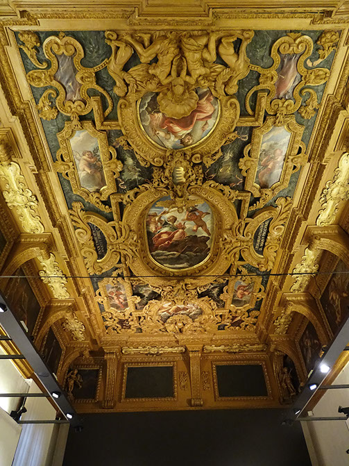 Geschnitzte und vergoldete Holzdecke im Piano Nobile