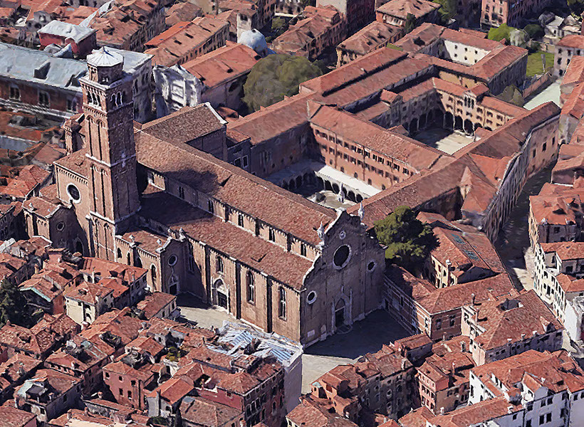 Frari-Kirche und ehemaliges Kloster. Foto GoogleEarth.