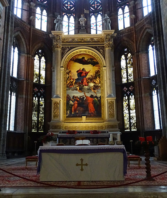 Blick auf den Hochaltar mit Tizian-Gemälde.