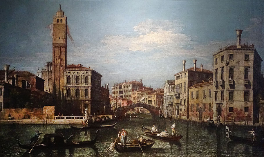 Canaletto (1697-1768). Canal Grande verso Cannaregio, Chiesa San Geremia, Palazzo Labia e il Ponte delle Guglie, 1742.