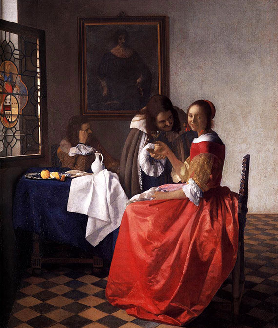 1659-Jan Vermeer (1632-1675). A Lady and Two Gentlemen, 1659. WikiArt.