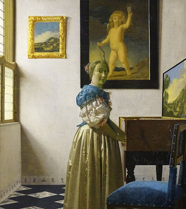 1670-Jan Vermeer (1632-1675). A Young Woman standing at a Virginal (Cembalo), 1670-72. National Gallery London.