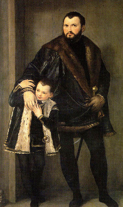 1552-Paolo Veronese (1528-1588). Portrait Iseppo da Porto mit Son Adrian, 1552. Galleria degli Uffizi, Firenze.