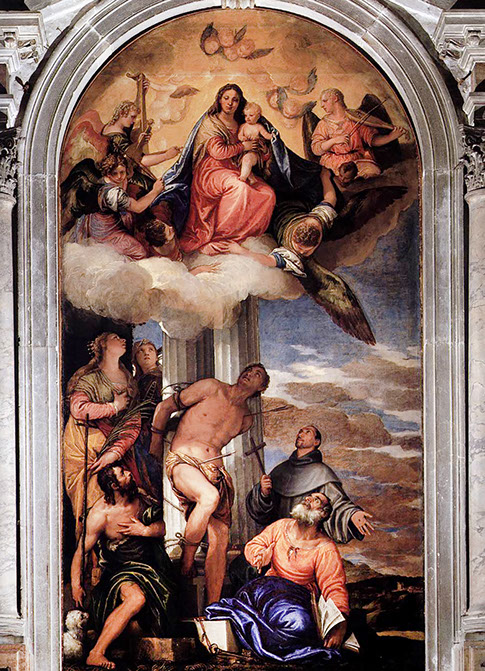 1564-Paolo Veronese (1528-1588). Vergine e Bambino con Santi, 1564-65. Collezione San Sebastiano, Venezia.