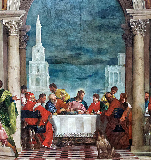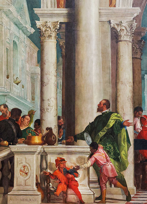 1573-Paolo Veronese (1528-1588). Gastmahl im Haus des Levi, 1573. Detail. Gallerie dell'Accademia, Venezia.