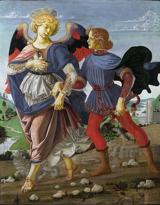 1470-Andrea del Verrocchio (1435-1488). Tobias and the Angel, 1470-75. National Gallery London.